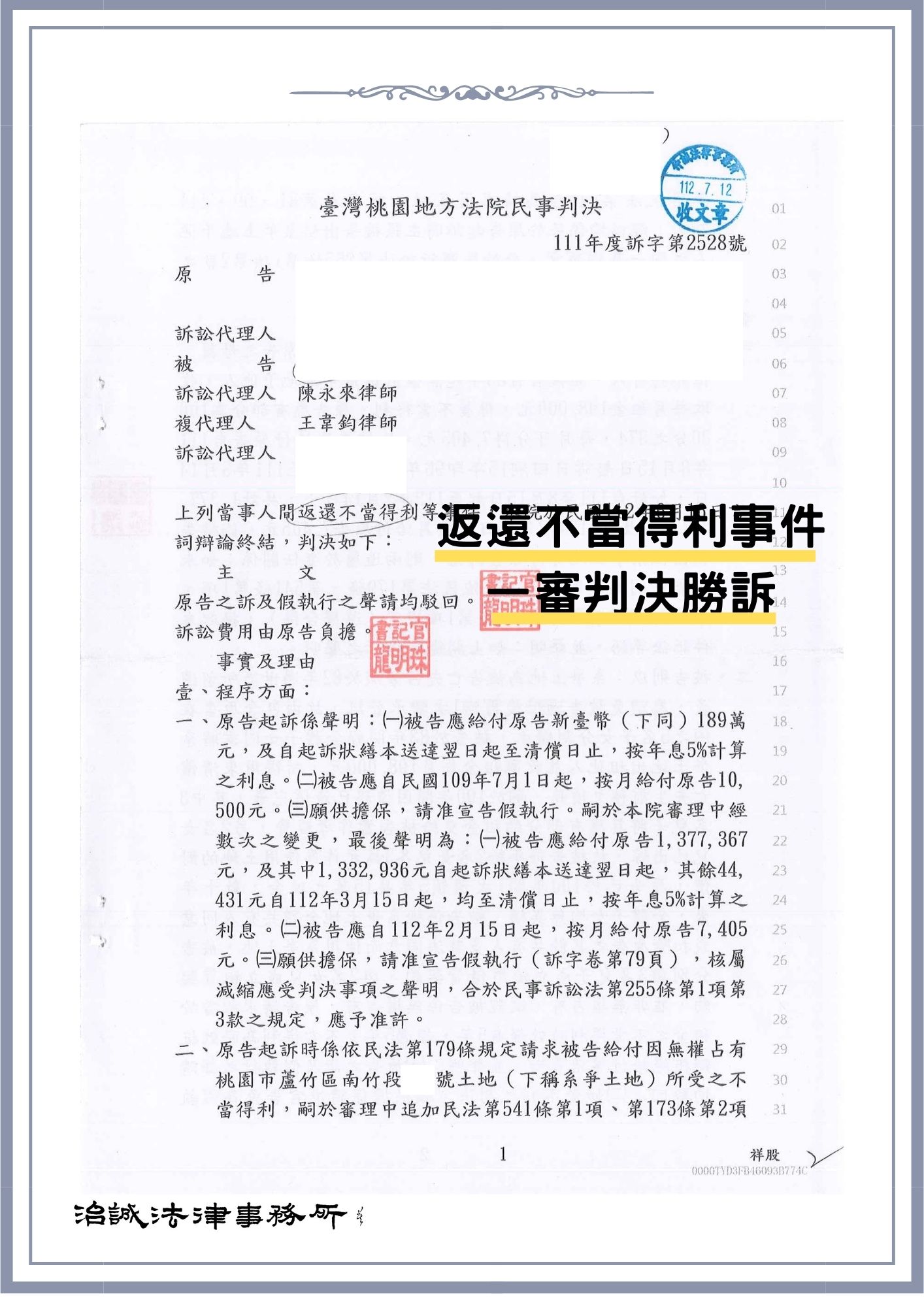 對方主張我方「無權出租共有土地」請求不當得利,法院認定多數共有人已同意,駁回請求