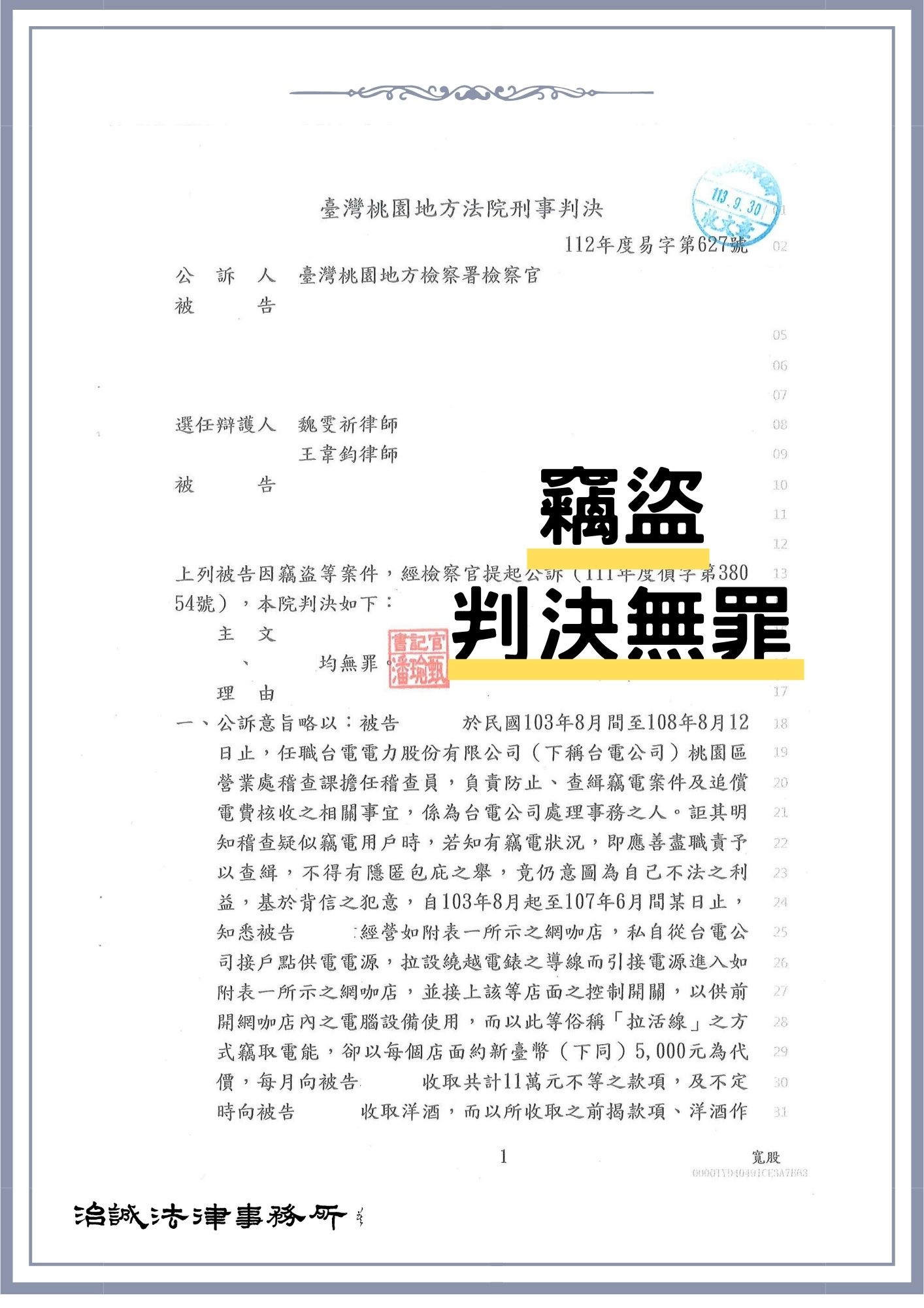遭控利用網咖竊取電力,法院認為並無竊電證據,判決無罪
