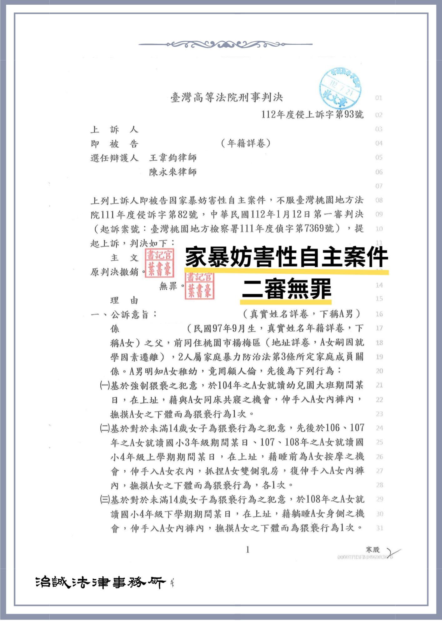 承辦律師:王韋鈞律師