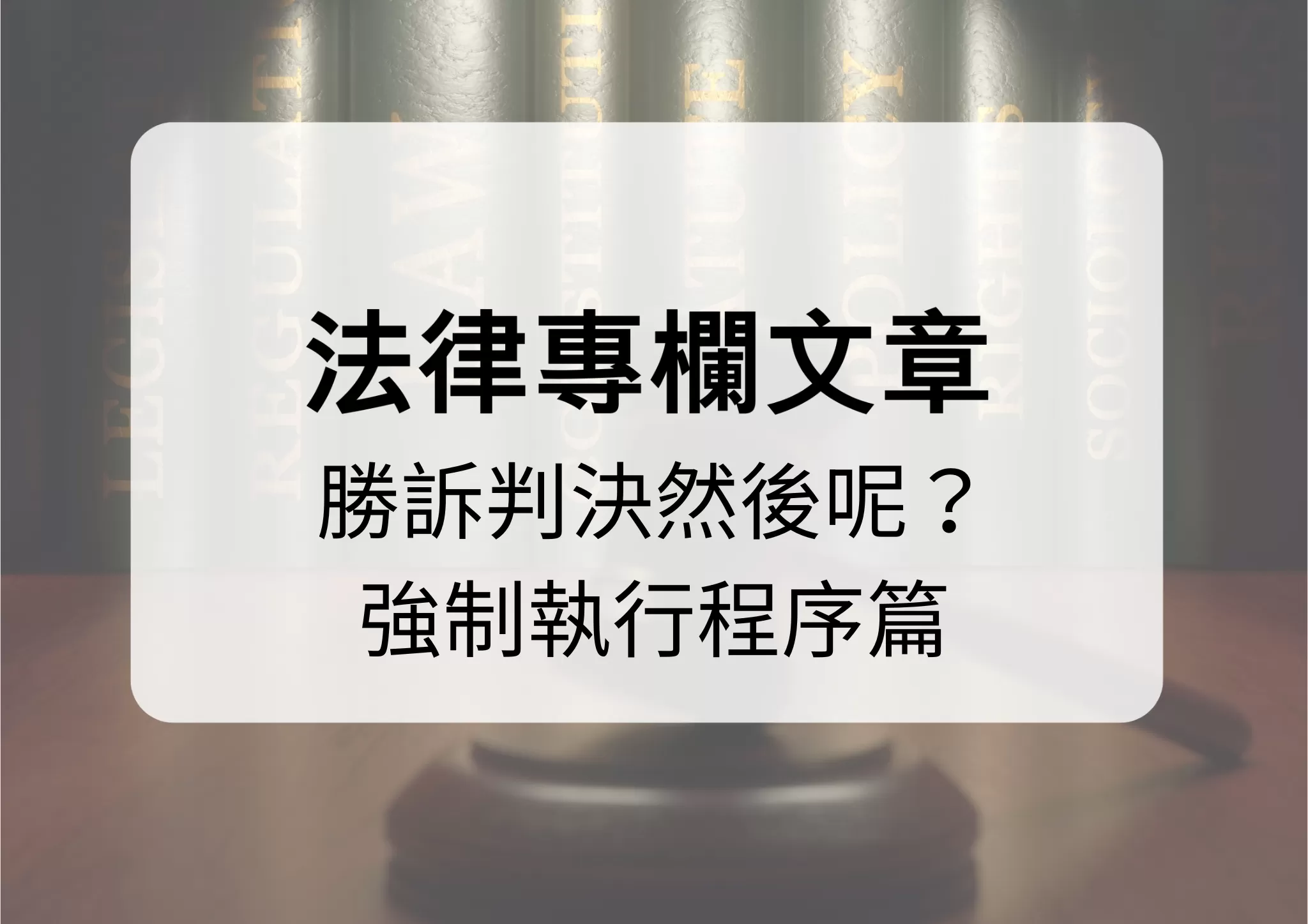 五、 打贏官司固然重要,但真正讓權利落實的,往往不是判決書上的主文,而是後續強制執行程序。理解強制執行制度,有助於建立正確的法律期待,也能避免「官司白打」的挫折感。