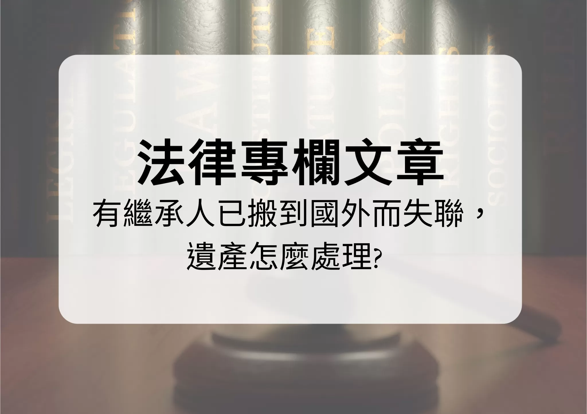 法律專欄-有繼承人已搬到國外而失聯,遺產怎麼處理? | 治誠法律事務所
