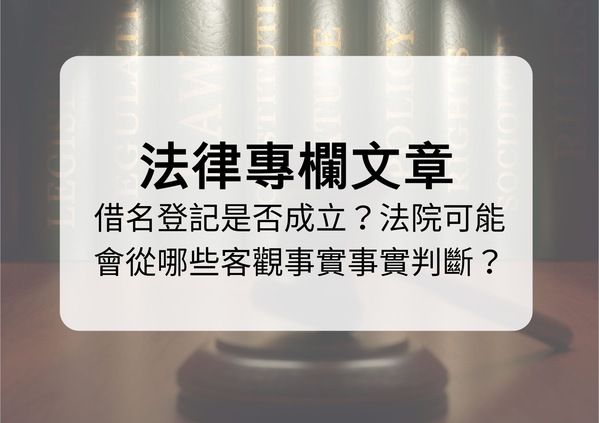 法律專欄-借名登記是否成立?法院可能會從哪些客觀事實事實判斷? | 治誠法律事務所